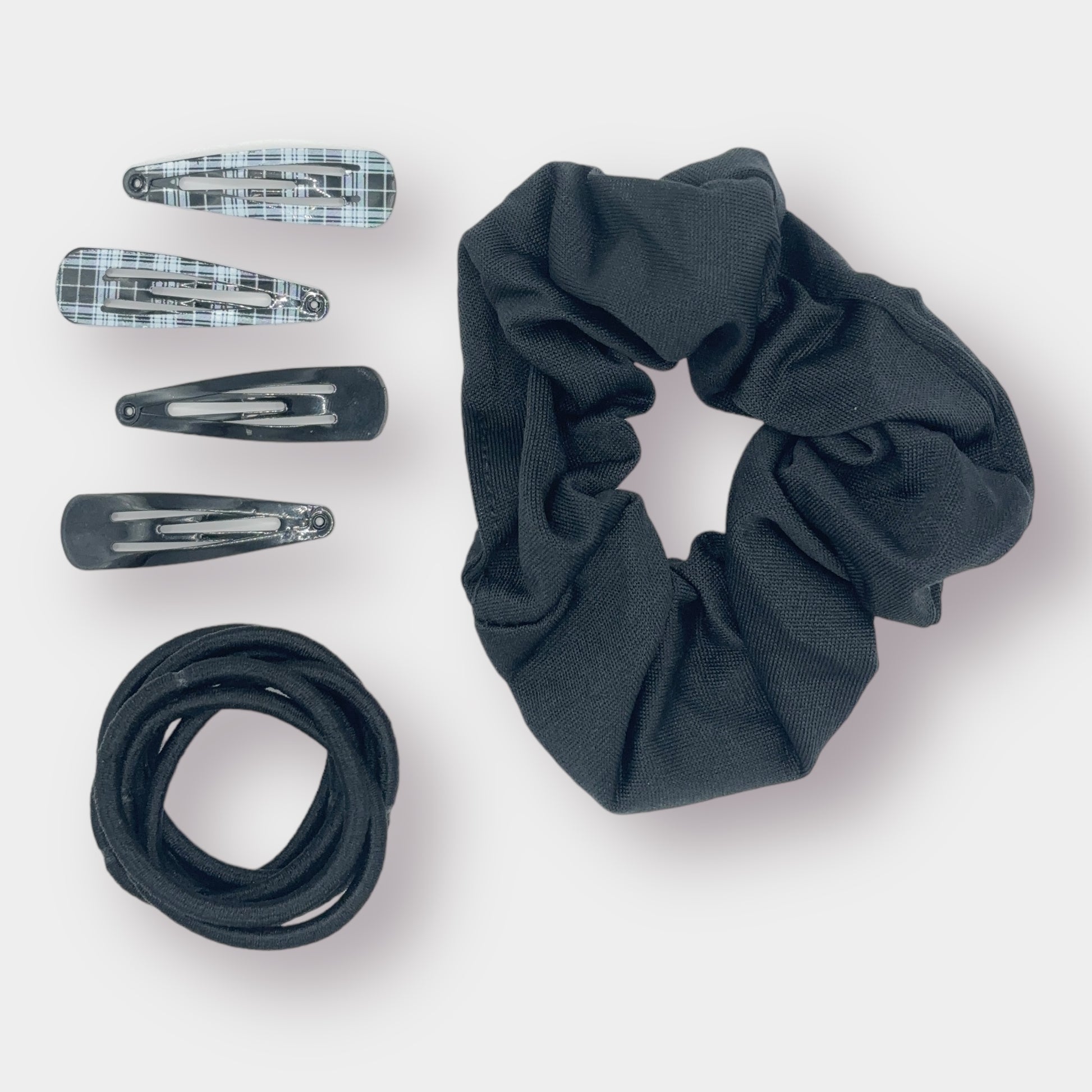 Get ready for the new school year with our Back to School Hair Accessories Set! This must-have collection includes 2 plaid clips, 2 solid clips, 8 bobbles, and 1 stylish scrunchie. Perfect for creating a variety of chic and practical hairstyles, this set ensures your child looks their best every day. Durable and trendy, it's an essential addition to any school wardrobe!