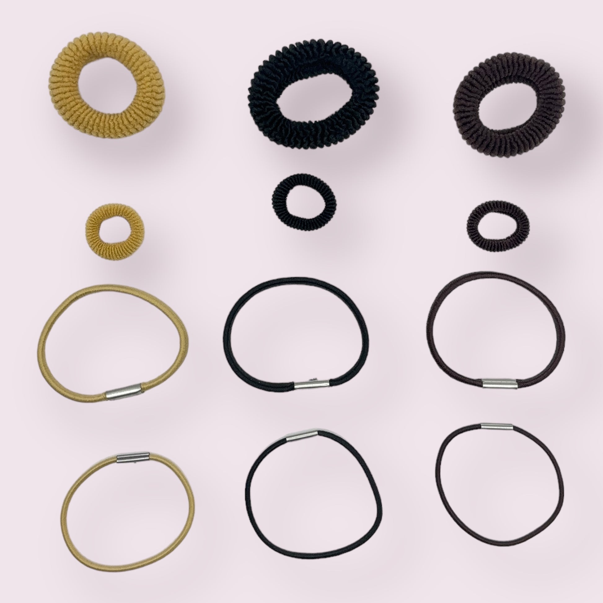 Upgrade your hair accessory collection with our Bobble Essentials Mix Bag. This 24 pack of essential hair bobbles in black, brown, or beige will keep your hair stylishly secured and damage-free.