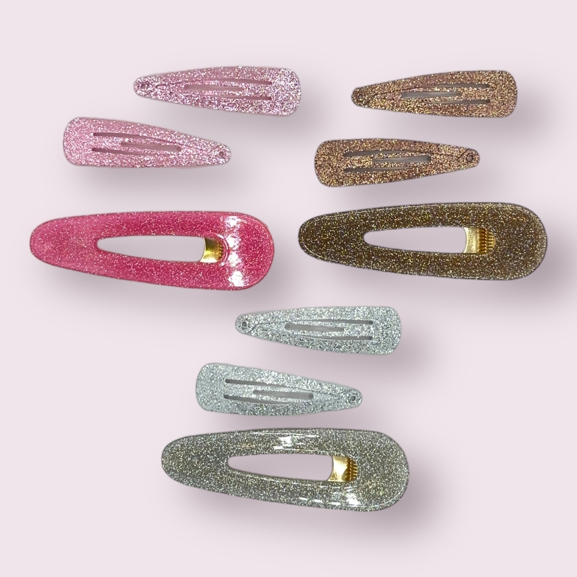 Add a touch of sparkle to your hair with our Glitter Clip Set! This 3 pack includes 2 small clips and 1 large clip, each featuring a unique glitter color. Elevate any hairstyle with these stylish and eye-catching accessories. Make a statement and dazzle with our Glitter Clip Set!