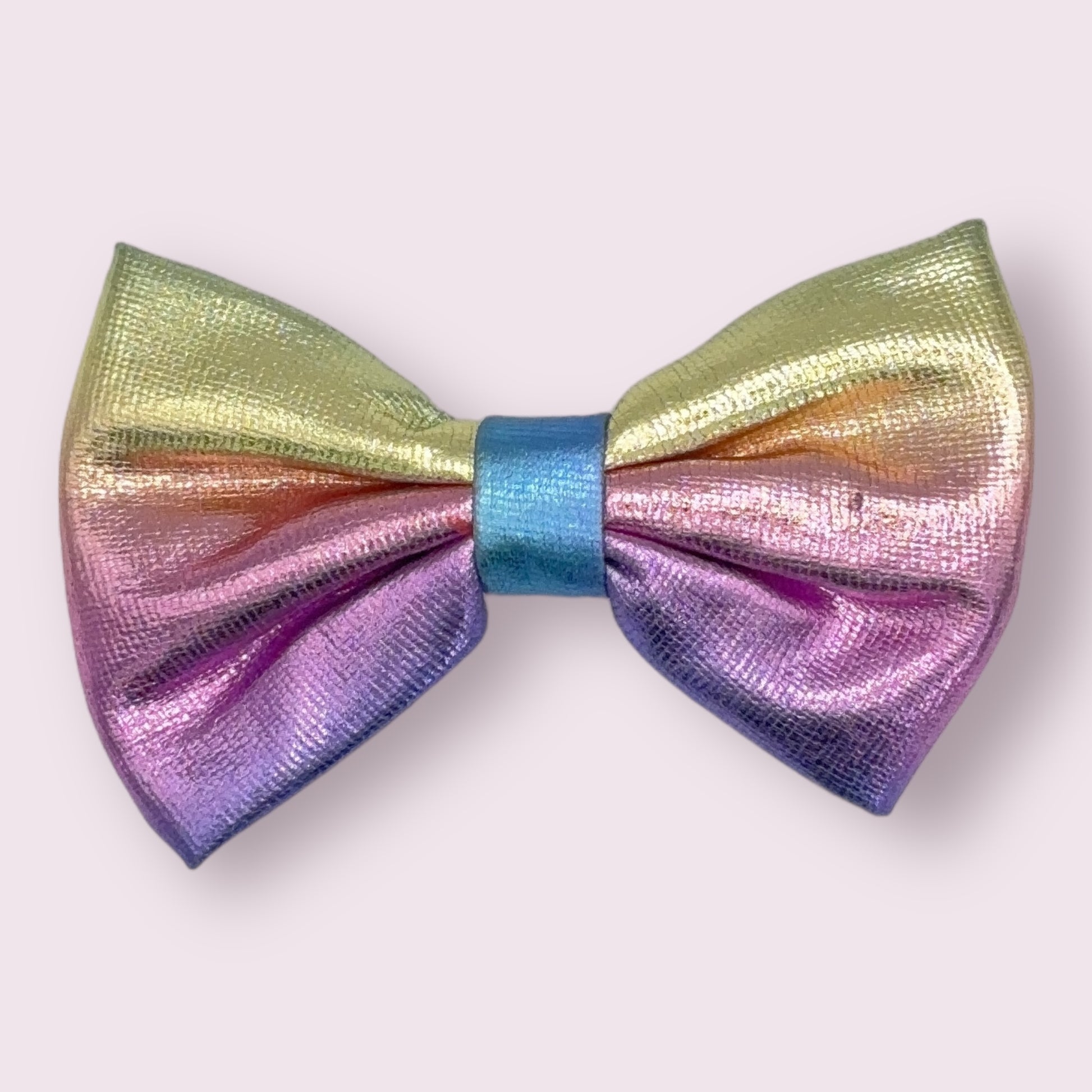 Add a pop of color to any hairstyle with our Medium Rainbow Bow Clip! The vibrant rainbow design will bring joy and playfulness to your looks. Perfect for any hair type and occasion.