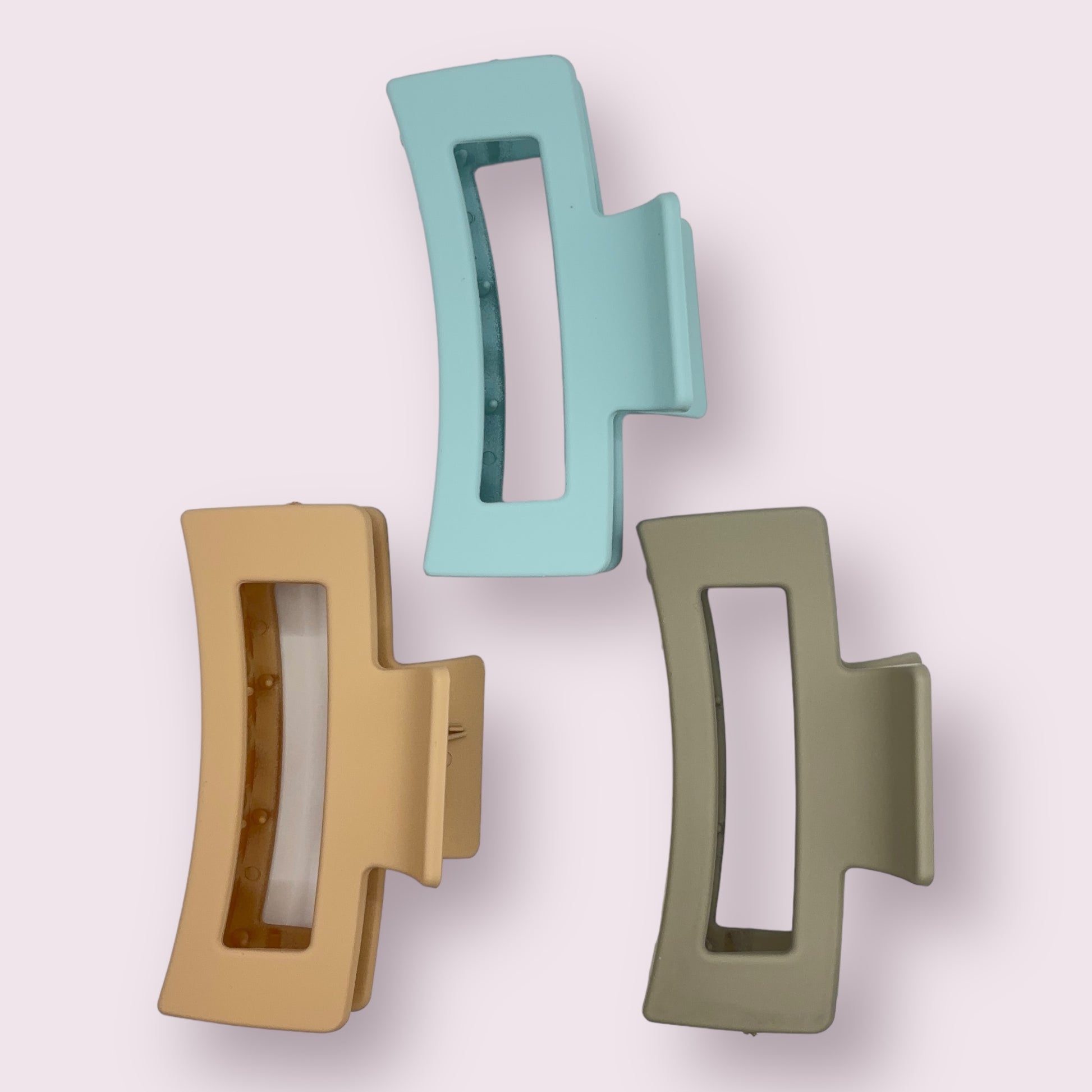 Elevate your hairstyle with our Pastel Square Claw. Choose from soft shades of blue, grey, or brown to add a touch of elegance to your look. This stylish hair accessory is perfect for any occasion. Make a statement with our Pastel Square Claw.